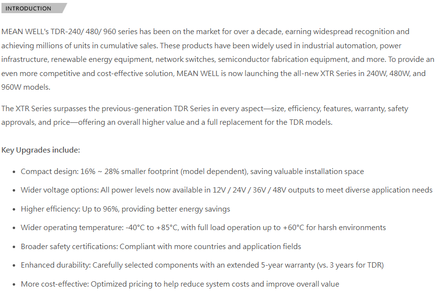 XTR-240/ 480/ 960 Series: 240W/ 480W/ 960W – Next-Generation 3-Phase I…