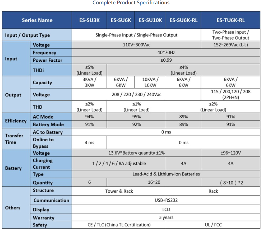 ES-SU/TU Series: 3kVA~10kVA Online UPS Systems