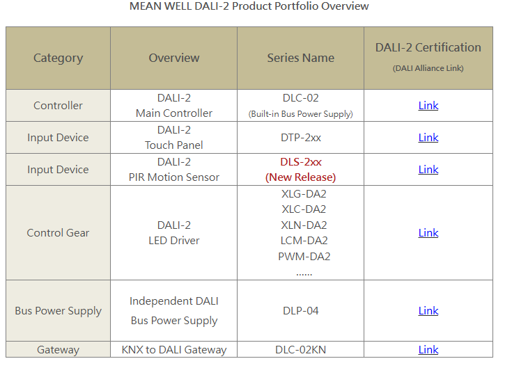 이번 출시로 MEAN WELL은 이제 LED 드라이버와 메인 컨트롤러부터 터치 패널 및 센서에 이르기까지 모든 것을 포함하는 완벽한 DALI-2 조명 시스템을 제공하게 되었습니다. 이를 통해 현대 빌딩 자동화 분야에서