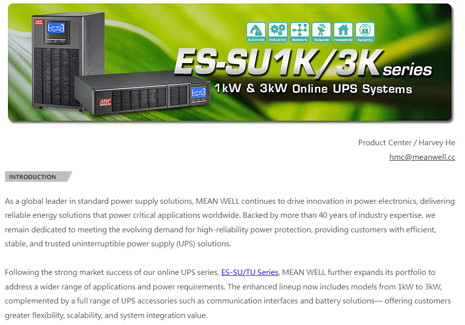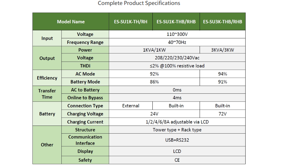 ES-SU1K/3K Series: 1kW & 3kW Online UPS Systems